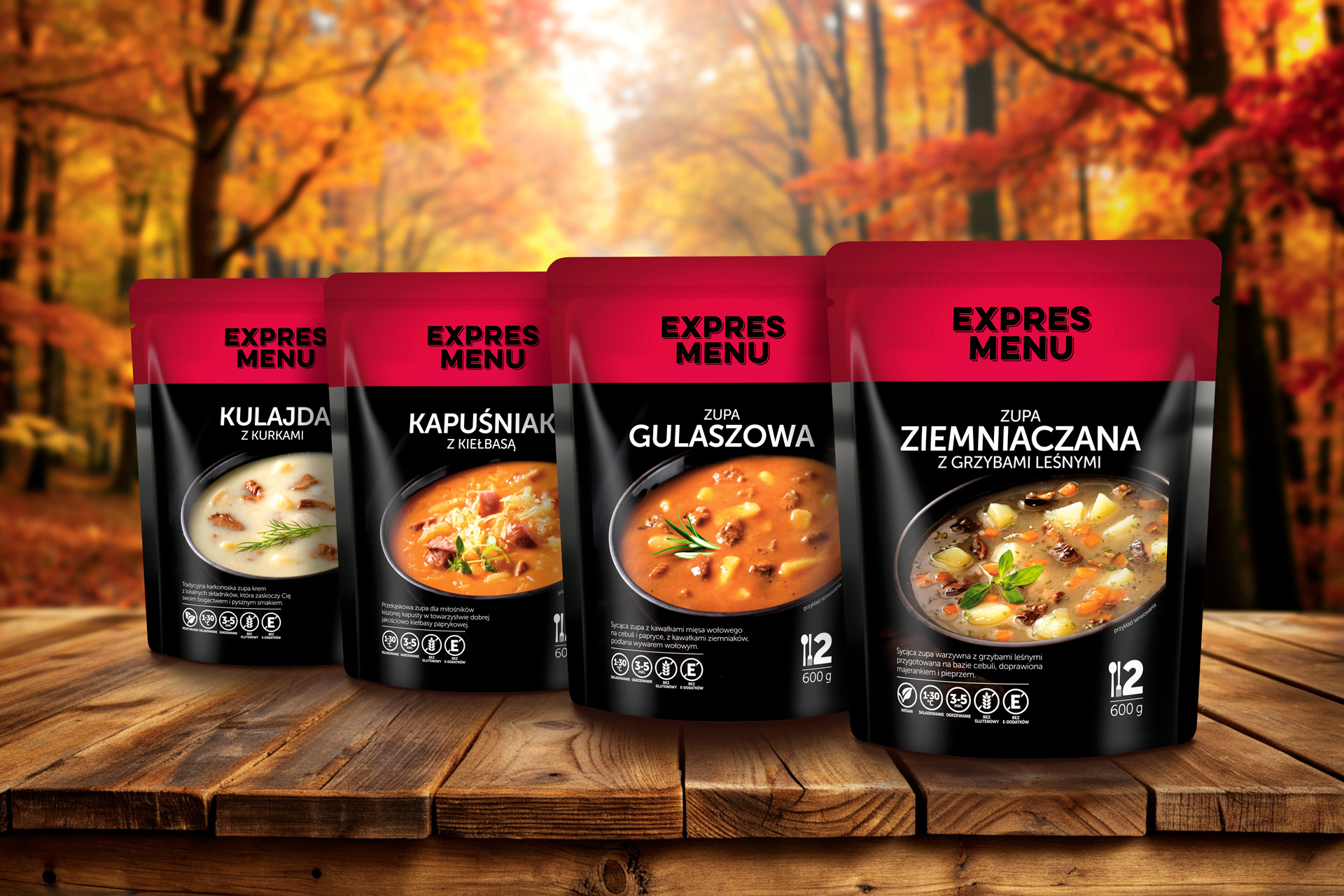 Zupę wystarczy podgrzać w saszetce – w czajniku, na kuchence kempingowej albo w mikrofalówce w campingu. Można od razu podać przy namiocie. A największy plus? Do przechowywania nie potrzebujesz lodówki.