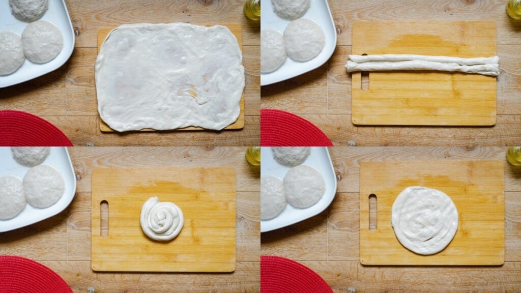 - Těsto naolejovanýma rukama rozdělte na čtyři bochánky, které rozložte do naolejované misky tak, aby se vzájemně nedotýkaly. Bochánky potřete olejem, přikryjte potravinářskou fólií a nechte odpočívat nejlépe do druhého dne v chladu.